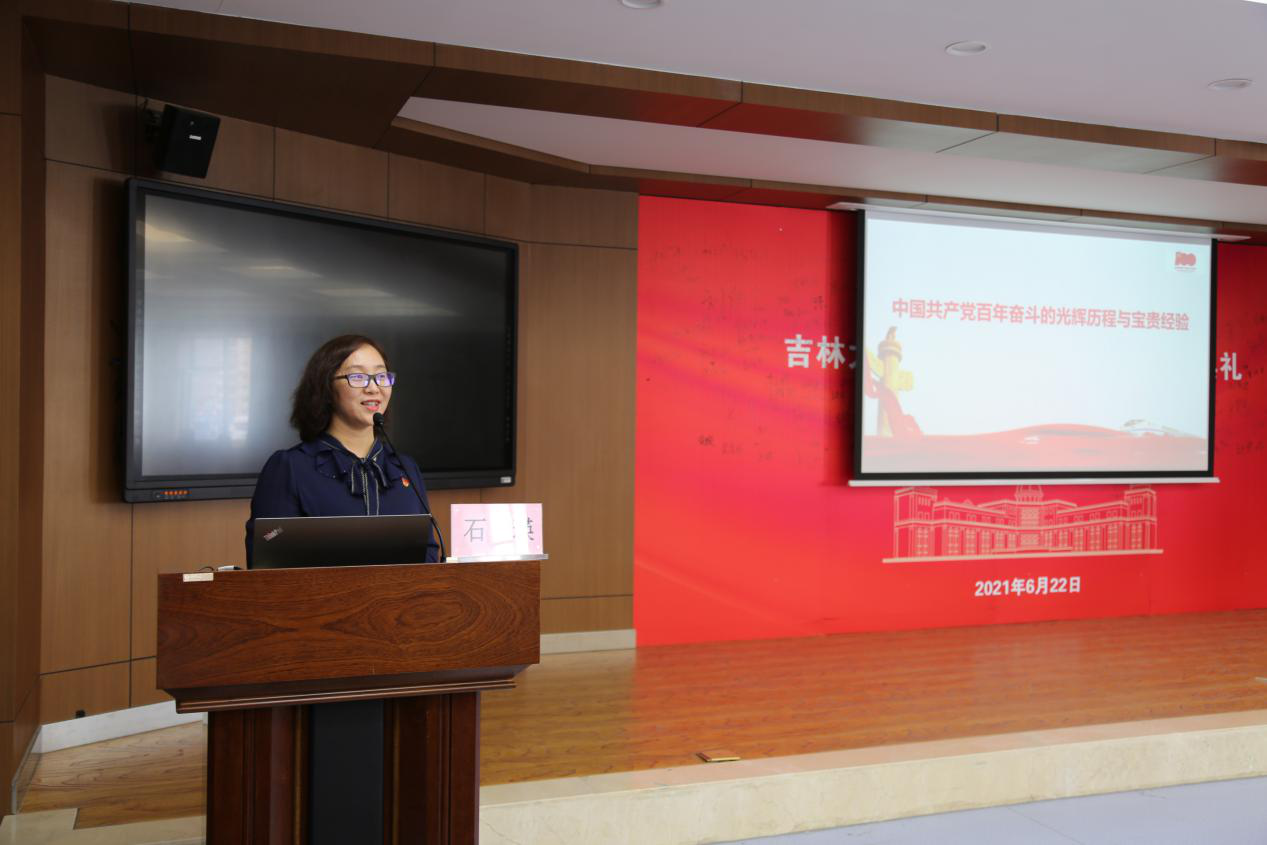 石瑛教授以《人民日报》微博刊登的1901和2021“两个辛丑年的对比”照片为切入点,阐述了开展党史学习教育的重大意义、中国共产党百年奋斗的光辉历程和中国共产党百年奋斗的宝贵经验。首先,要充分认识开展党史学习教育的重大意义。深入学习习近平总书记在党史学习教育动员大会上的讲话精神,明白为什么学、学什么、怎么学。其次,中国共产党百年奋斗的光辉历程中,在经历了艰苦卓绝的新民主主义革命时期、社会主义革命和建设时期、改革开放和社会主义现代化建设新时期之后,终于迎来了中国特色社会主义新时代。最后是中国共产党百年奋斗的宝贵经验,即:必须坚持党对一切工作的领导;必须坚持马克思主义的指导地位;必须坚持走中国特色社会主义道路;必须坚持以人民为中心;必须坚持把发展作为党执政兴国的第一要务;必须坚持深化改革开放;必须坚持民主集中制;必须坚持科学执政、民主执政、依法执政;必须坚持社会主义意识形态;必须坚持党对人民军队的绝对领导;必须坚持巩固和发展最广泛的爱国统一战线;必须坚持推进人类和平与发展的崇高事业;必须坚持全面从严治党。