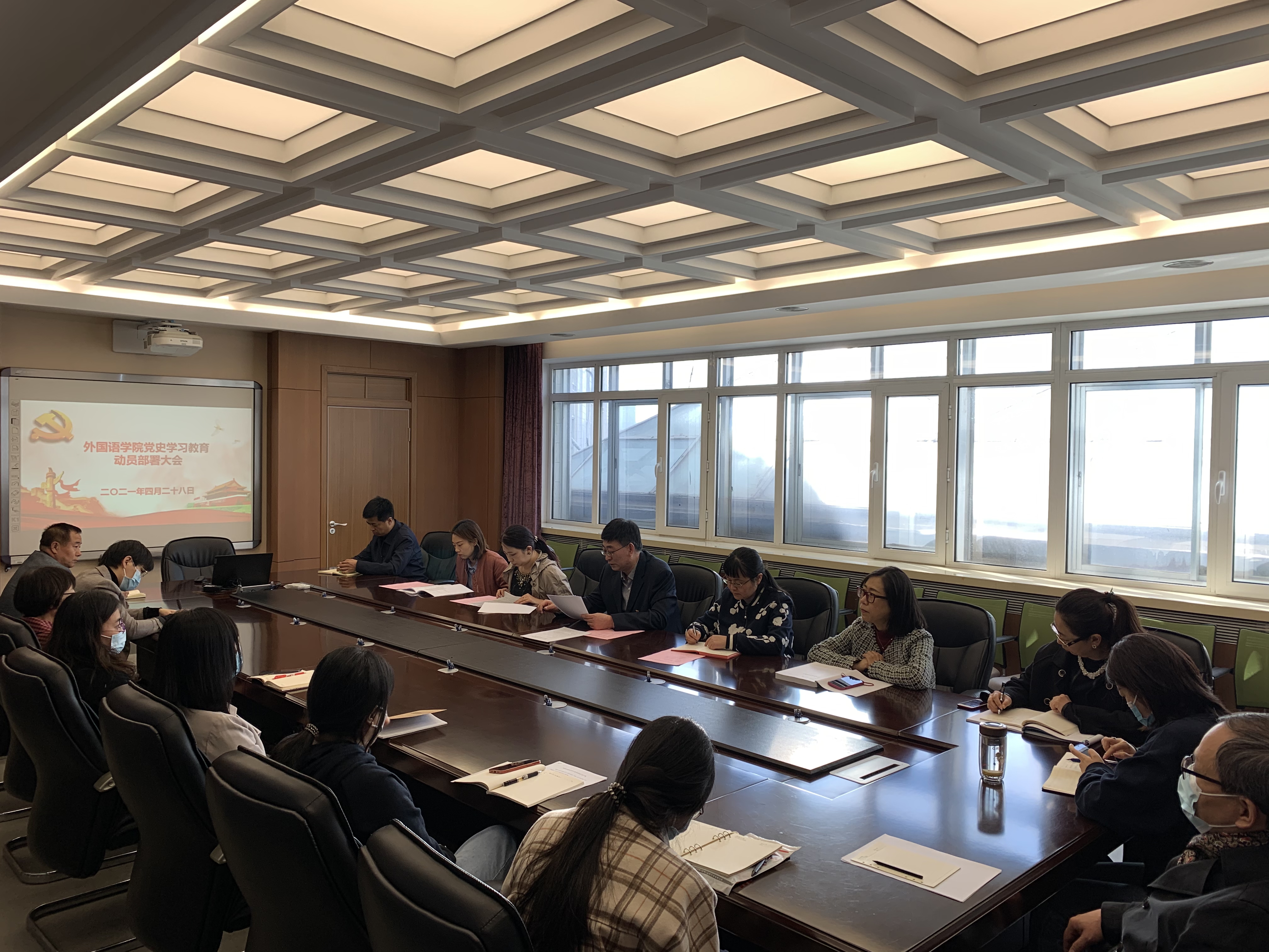 在外语楼318会议室召开党史学习教育动员部署会,深入学习贯彻习近平总书记在党史学习教育动员大会上的重要讲话精神,全面落实学校党史学习教育动员大会有关要求,对全院开展党史学习教育进行动员部署。学院党委书记刘昌松做动员讲话,院长张玫玫主持会议。学校党史学习教育第十指导组副组长吴哲、联络员王赫谊到会指导。
