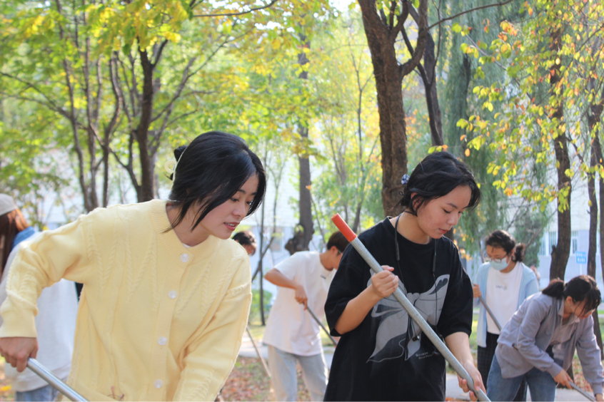 联合学校后勤服务集团,组织开展了校园落叶清扫劳动实践活动。按照个人自愿原则,学院2021级、2022级本科生参加本次活动。